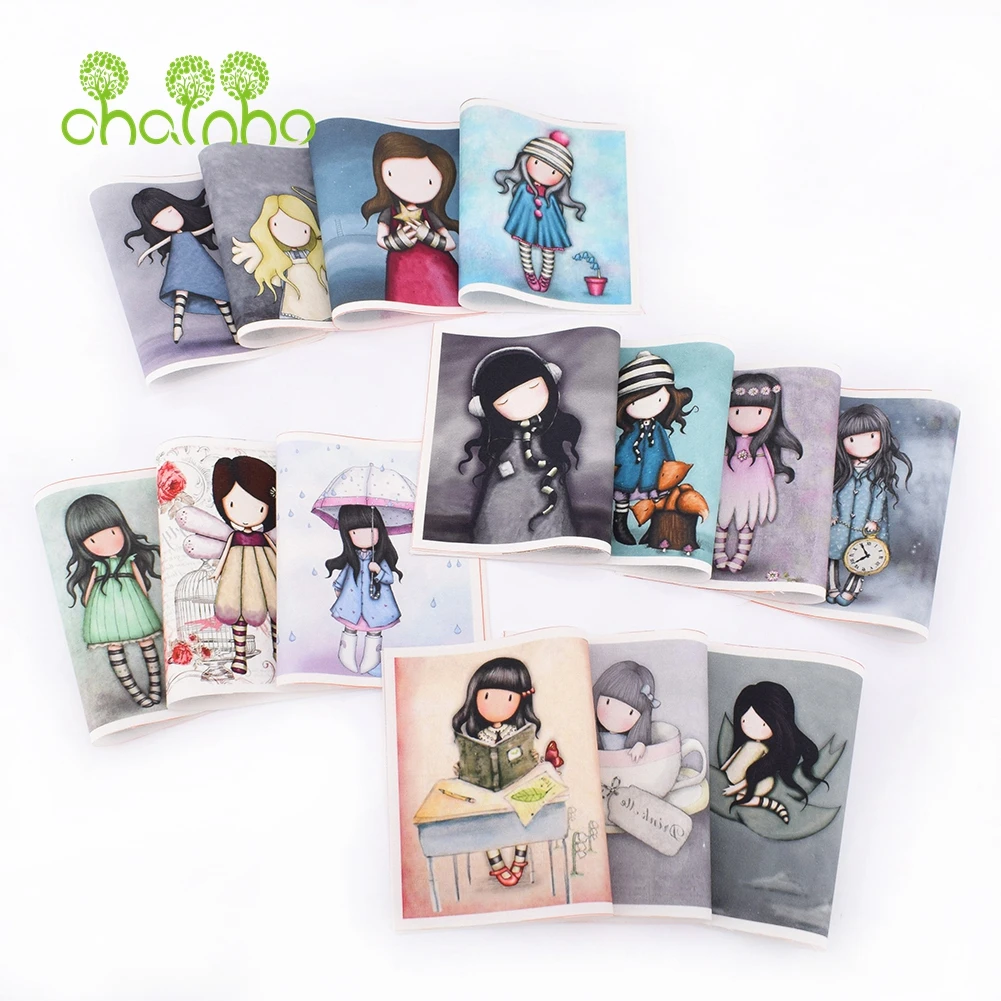 Tissu en toile de coton de positionnement symétrique teint à la main, filles mignonnes, pour bricolage, couture et sac à main matelassé, matériel de décoration de couverture de livre