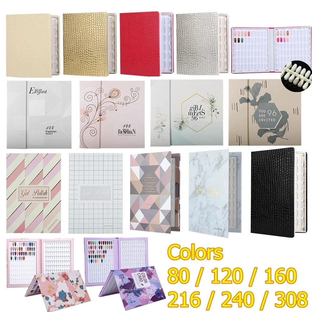 Livre d'affichage des ongles 120/160/216/240/308, couverture en cuir, tableau de échantillons de vernis Gel, outils de Salon, présentoir d'étagère, carte de couleur