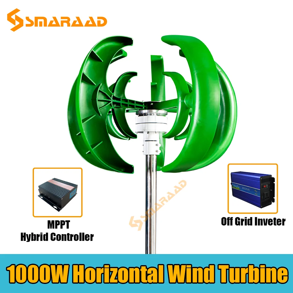 Turbine Éolienne avec Kit de Moteur à Axe Vertical, 5 Éoliennes, 1000W, 12V/24V, pour Éclairage Domestique et Lampadaire Électromagnétique