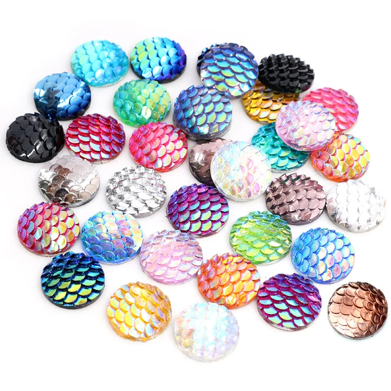 40 pièces 8mm 10mm 12mm mélange couleurs sirène poisson échelle dos plat strass rond Cabochon embellissement Scrapbooking bricolage artisanat