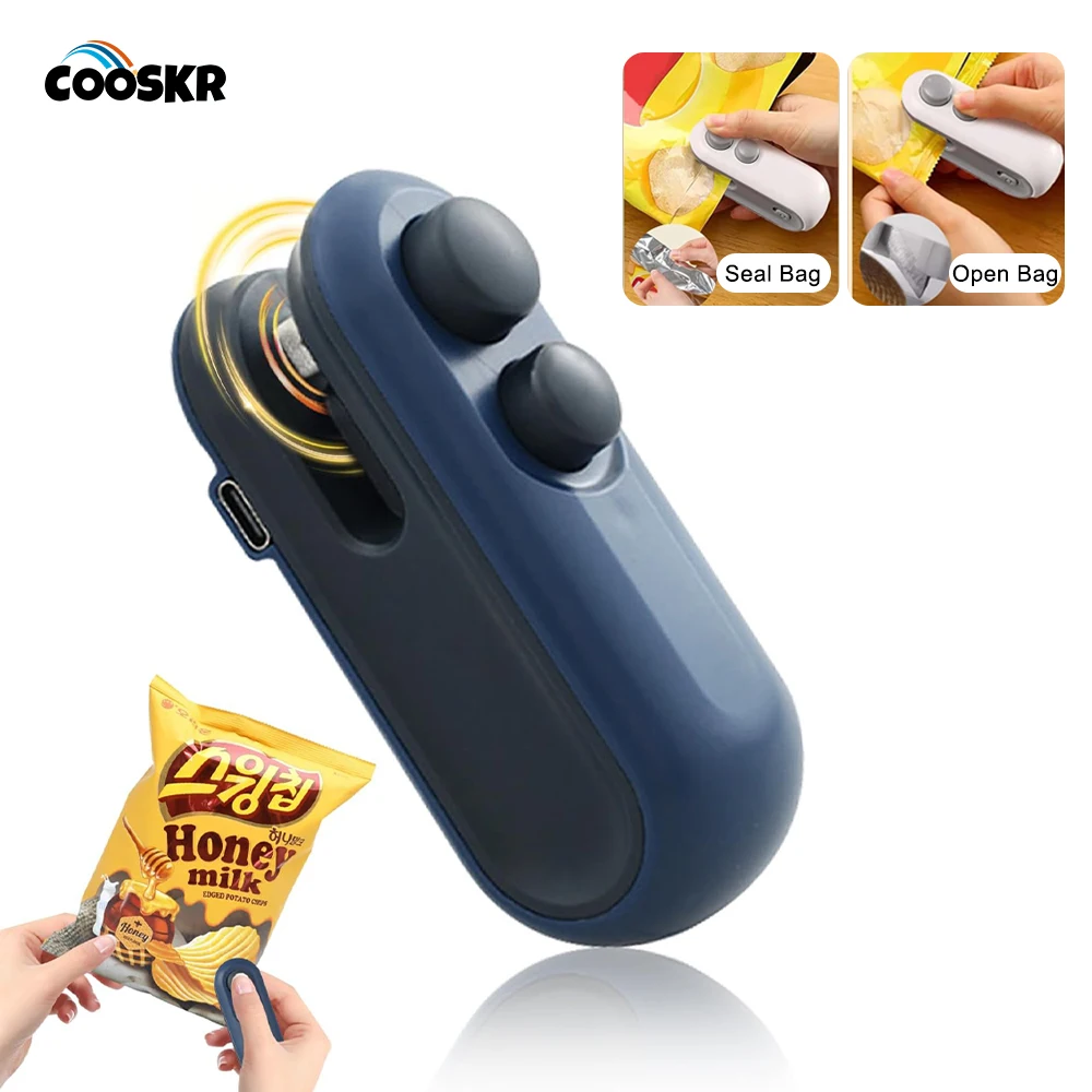 Mini Machine à sceller les sacs thermiques, scelleuse Portable de sacs en plastique pour collations 2 en 1, Rechargeable, thermoscelleuse pour emballage alimentaire