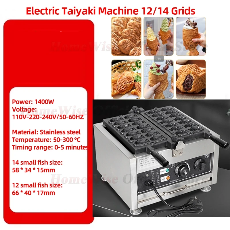 HomeWise Taiyaki Maker 1400W Machine à gaufres en forme de poisson 12 pièces/14 pièces Taiyaki gaufrier revêtement antiadhésif électrique/gaz