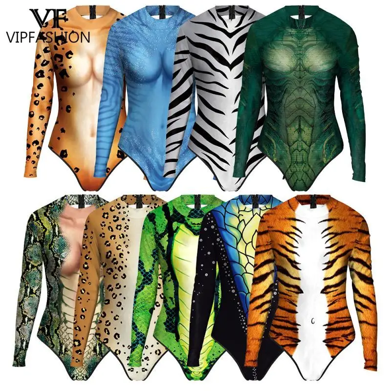 VIP FASHION motif zèbre Cosplay Costume léopard Zentai body Halloween fantaisie Animal maillot de bain à manches longues maillot de bain d'été
