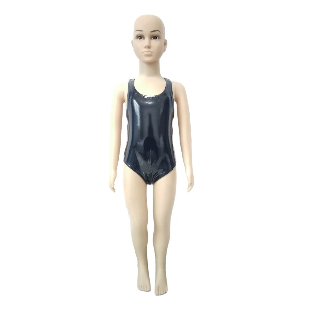 Maillot de bain une pièce en cuir PVC avec fermeture éclair à l'entrejambe pour enfants, Catsuit court, Body Zentai, Costume