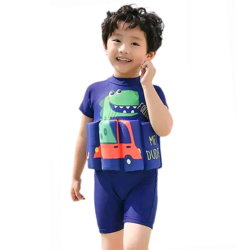 Maillot de bain de flottabilité une pièce costume enfants à manches courtes maillot de bain flottant enfant dessin animé maillot de bain bébé enfant en bas âge maillot de bain