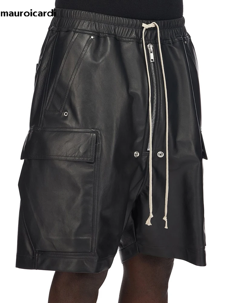 Mauroicardi-Short droit en cuir PU noir pour homme, taille élastique, vêtements Wstring, décontracté, doux, cool, beau, été, 2023