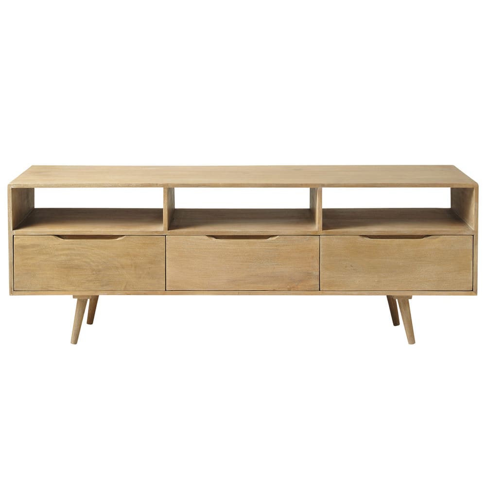 Commode 3 tiroirs en bois d'acacia et de manguier noire L110