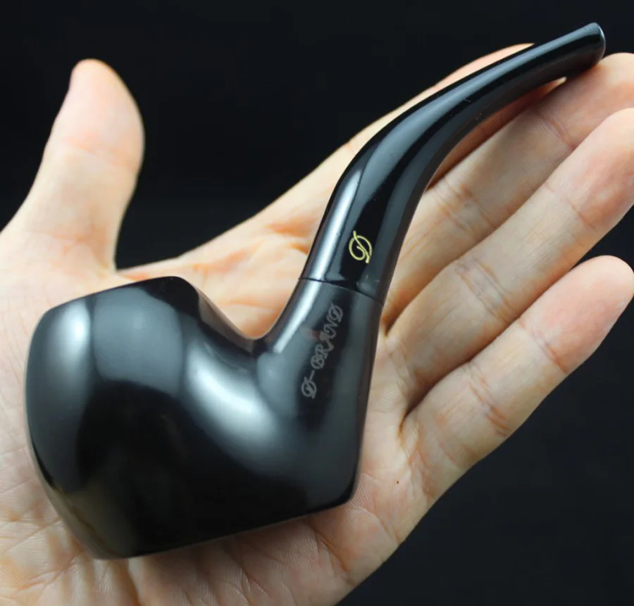 Pipe à fumer ronde en bois d'ébène naturel fait à la main à fond plat, 10 pièces de filtres 9mm + pochette + support # 409S