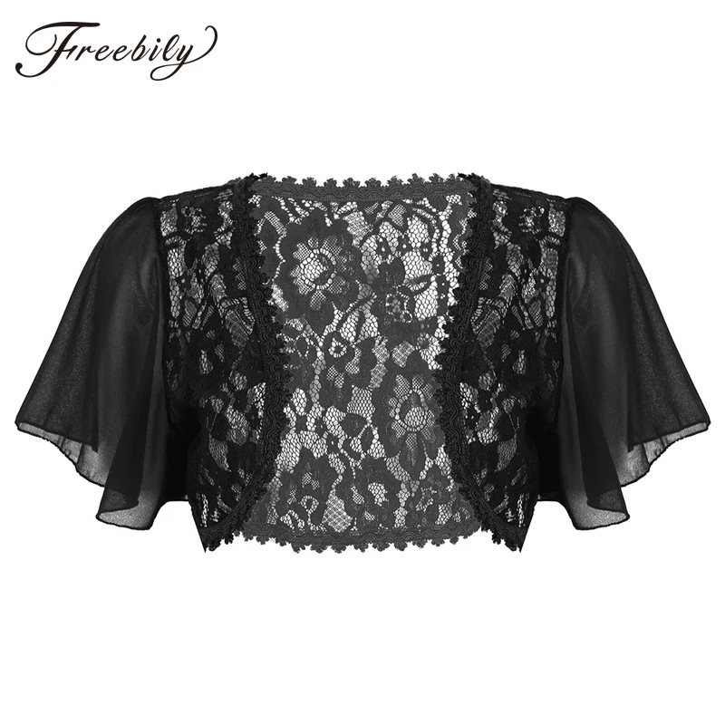 BEmbed-Veste courte en dentelle pour femme, manches courtes cloche, noir, blanc, élégant, mariage, soirée, Rh, dames, sexy