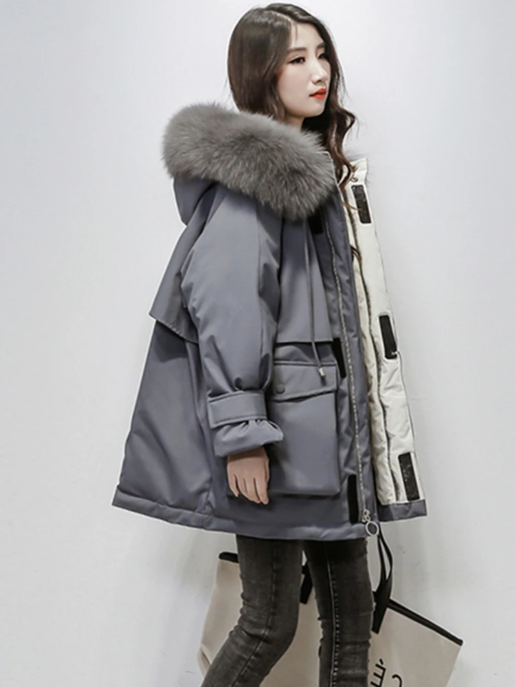 Manteau d'hiver surdimensionné en fausse fourrure pour femme, Parka longue et chaude, veste à capuche, manteau d'hiver ample, vêtements d'extérieur Casaco Feminino