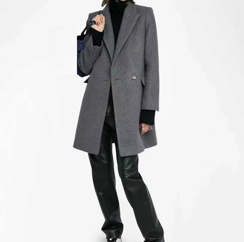 Le nouveau blazer mi-long en laine de niche française a une texture croustillante et est amincissant