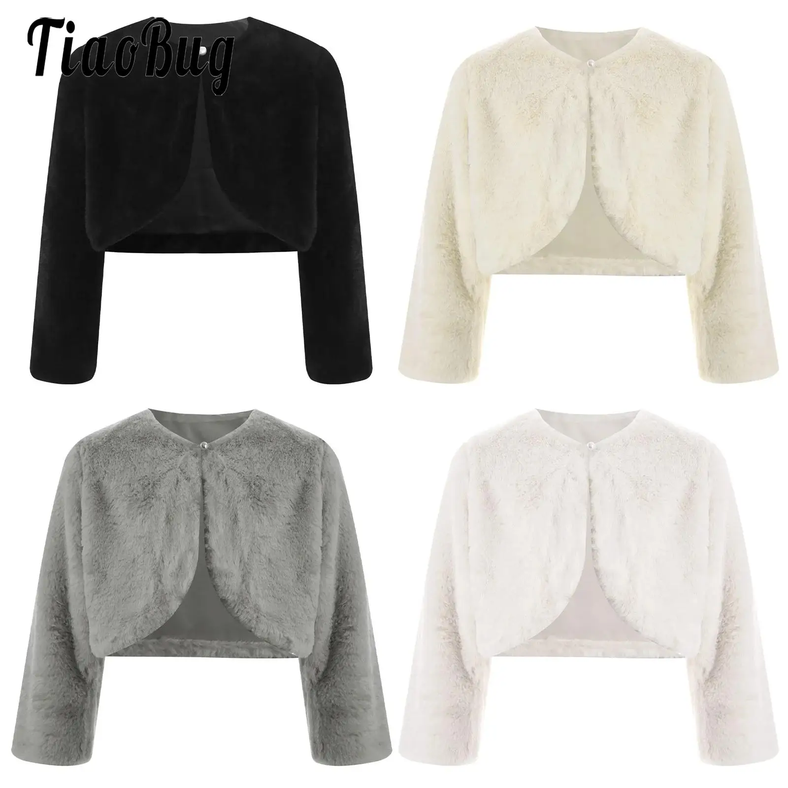 Manteau court en fausse fourrure pour enfants, pardessus ouvert sur le devant, veste à manches longues, haut monochrome, 2 hauts, 12 ans
