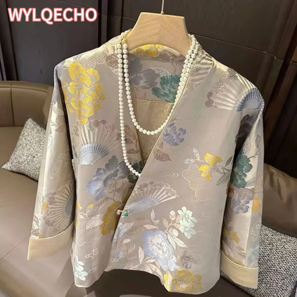 Costume Tang amélioré à manches longues et col en V, style rétro, chemisier quotidien, nouveau manteau d'automne, style chinois, 600, 2024