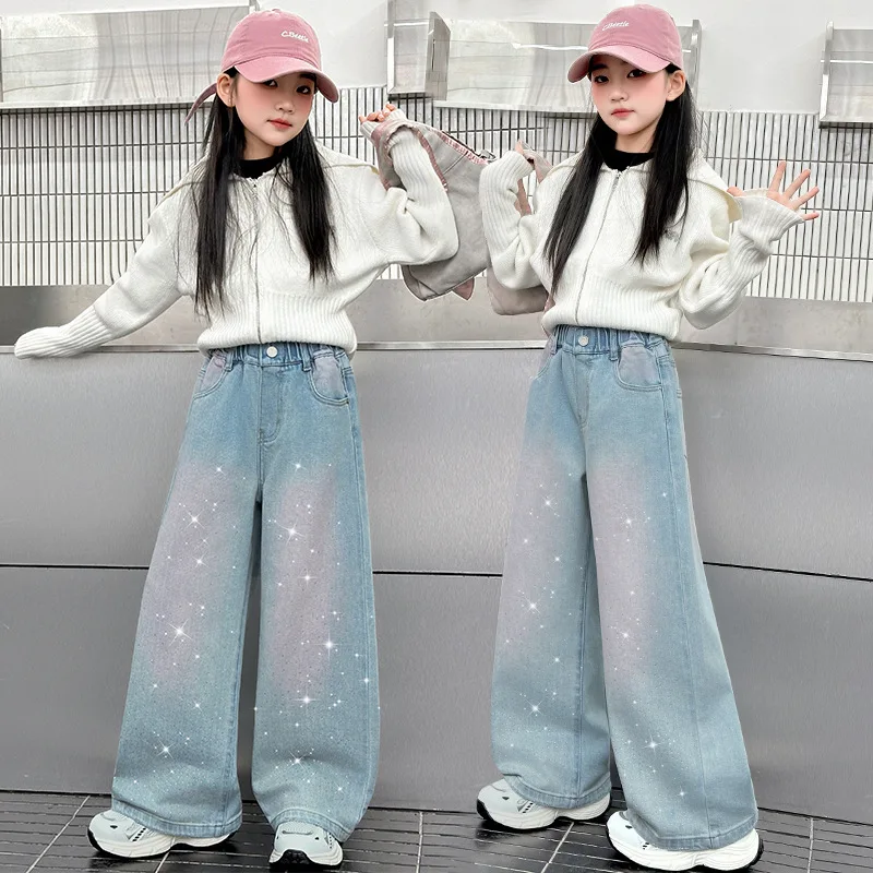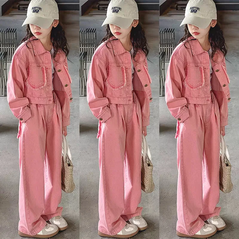 Ensemble veste en jean et pantalon à jambes larges pour adolescentes, tenue de mode pour enfants de 4 à 12 ans, 2 pièces, nouvelle collection printemps automne 2025