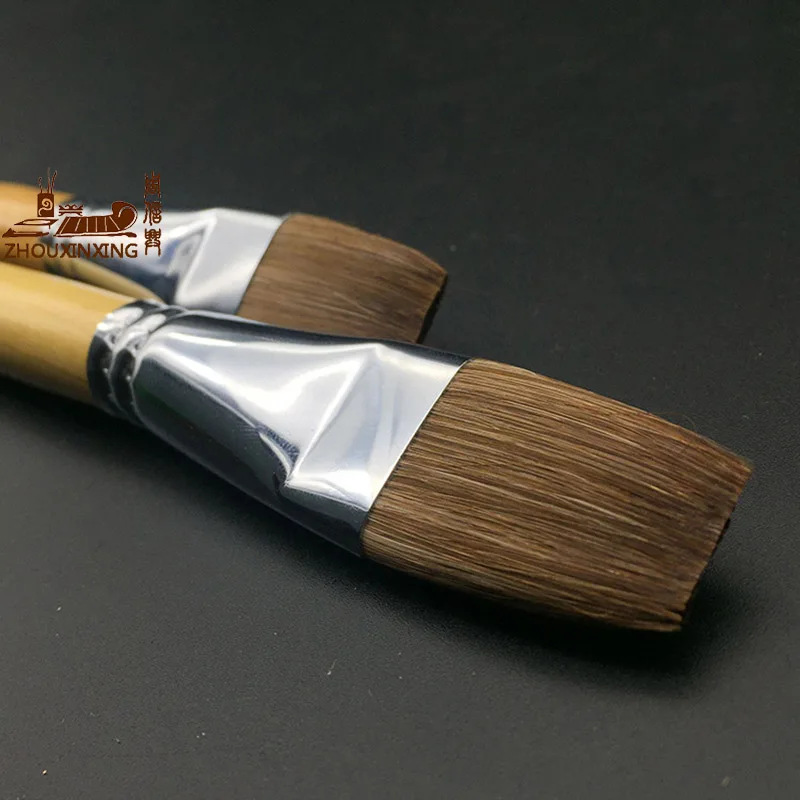 Zhouxinosphaquarelle stylo brosse belette cheveux plat pointe peinture, bois couleur tige longue courte 2 pièces peinture acrylique pinceau peinture