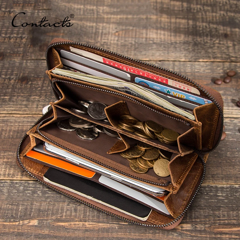 CONTACT'S RFID hommes portefeuille en cuir véritable pochette portefeuilles mâle décontracté longue sac à main avec poche pour téléphone grande capacité porte-carte sac