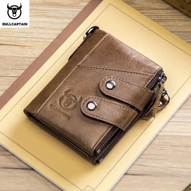 BULLCAPTAIN-Portefeuille à fermeture éclair Rfid pour homme, sac de rangement multifonction, porte-monnaie, sacs à cartes, sac à main en cuir véritable pour homme