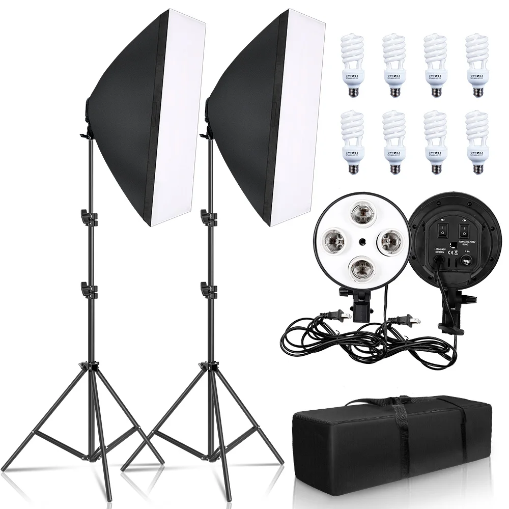Kits d'éclairage Softbox pour photographie 50x70CM, système d'éclairage professionnel avec ampoules photographiques E27, équipement de Studio Photo