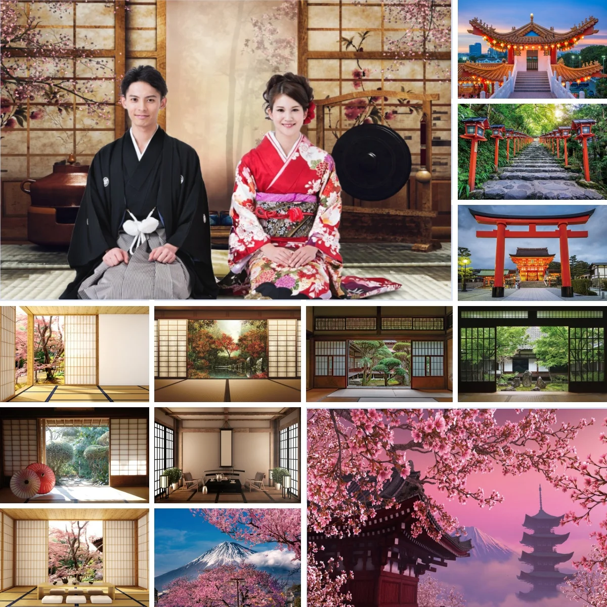 Toile de fond pour photographie de paysage japonais, décoration de salle de construction de sanctuaire, Sakura Mount Fuji, arrière-plan pour Portrait d'adulte, Studio Photo