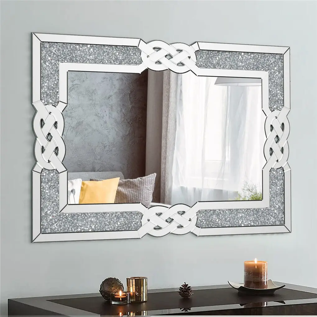 LUVODI miroir décoratif mural miroir en verre d'écrasement de cristal argenté pour décor de salon/lit/salle à manger/salle de bain