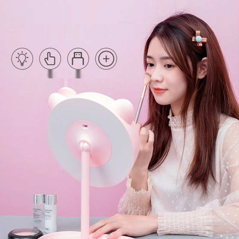 Miroir de maquillage chat rose avec miroirs Led miroir sur pied écran tactile miroir de vanité lumière réglable bureau miroirs cosmétiques