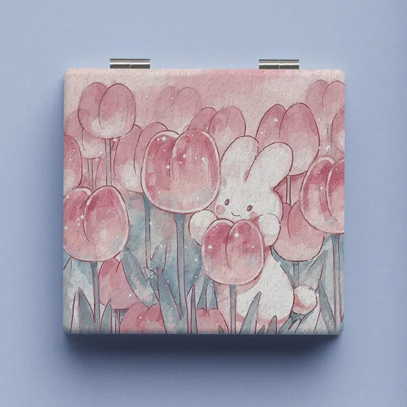 Miroir de maquillage pliant double face portable, miroir grossissant carré tulipe, miroir de poche compact, miroir de détermination de vanité, miroirs pour étudiants