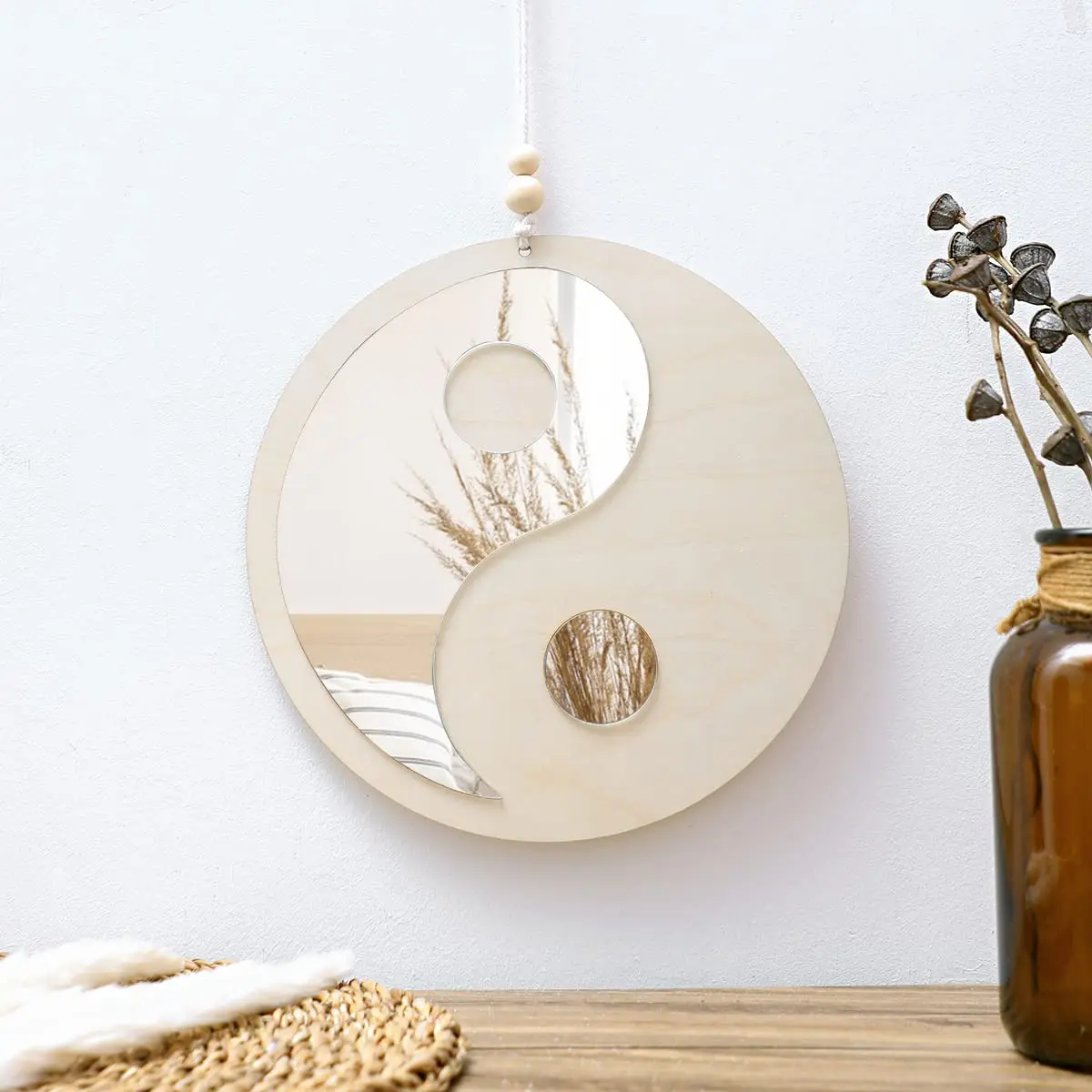 Miroir en bois décor à la maison Boho miroirs muraux pour salon chambre Tai Chi Yin Yang miroirs en bois chambre maison Feng Shui décoration