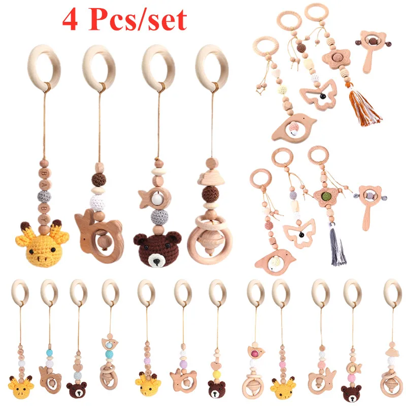 Cadre de gymnastique en bois de hêtre pour bébé, 4 pièces, activité nouveau-né, support de Fitness, pendentifs, jouets, hochet, anneau de dentition, décor de chambre d'enfants