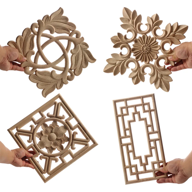 Applique en bois pour décoration de meubles en bois, décalcomanie en bois non peinte, fleurs longues, murs en bois, décoration de maison, décoration de fenêtre