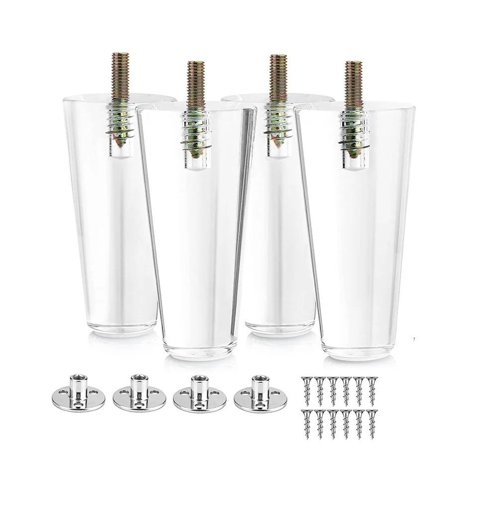 Pieds de meubles en acrylique du milieu du siècle, lot de 4 pieds pour canapé, chaise, table, commode, lit, armoire, charge 600kg