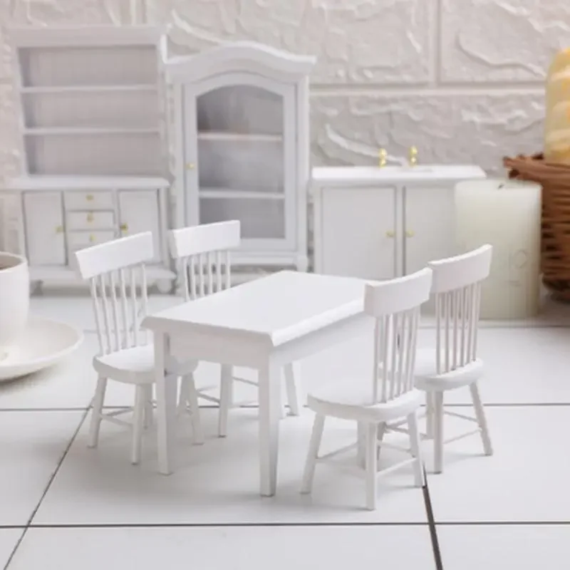 1 ensemble miniature en bois blanc Simulation Table à manger chaise 1:12 maison de poupée meubles jouet