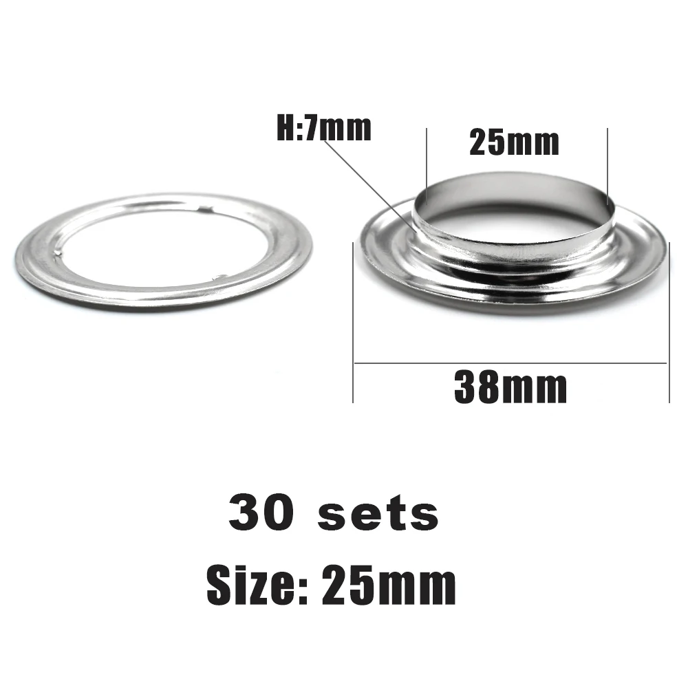 (30 pièces/lot) œillets métalliques 25mm trou de corde de tente vêtements et accessoires œillets anneau rivet boutons pression hangar tissu évent rivets