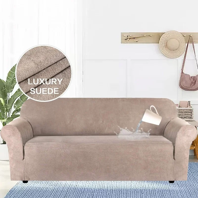 Housse de canapé en daim imperméable, haute élasticité, paquet complet, coussin de canapé amovible et lavable en tissu pour la maison 1/2/3/4 places