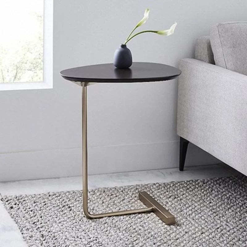 YLIVE-Table d'Appoint Moderne Simple en Fer, Canapé d'Angle, Lecture de oral et, Table Basse Ovale, Thé, Comptoir en Bois Massif