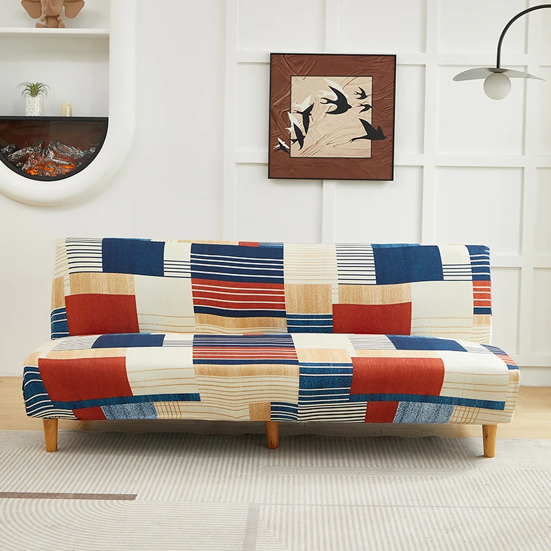 Housse de canapé-lit pliante extensible sans accoudoirs Housse de canapé futon sans accoudoirs Housse de canapé 3 places amovible lavable en machine pour la maison