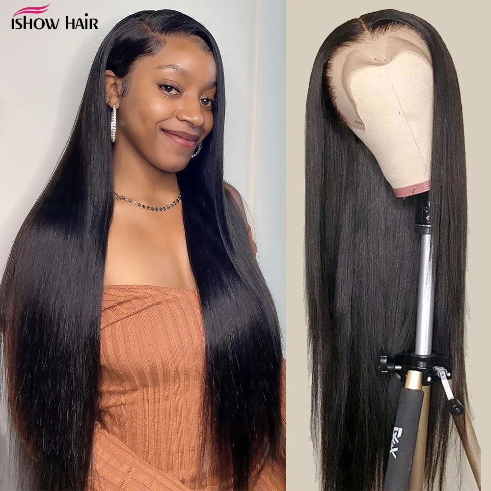 Ishow-Perruque Lace Front Brésilienne Lisse pour Femme, 13x4, 13x6, Pre-Plucked, Densité 250