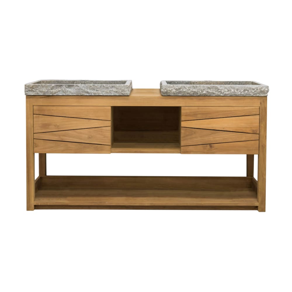 Meuble de salle de bain en teck et vasque marbre gris L67cm