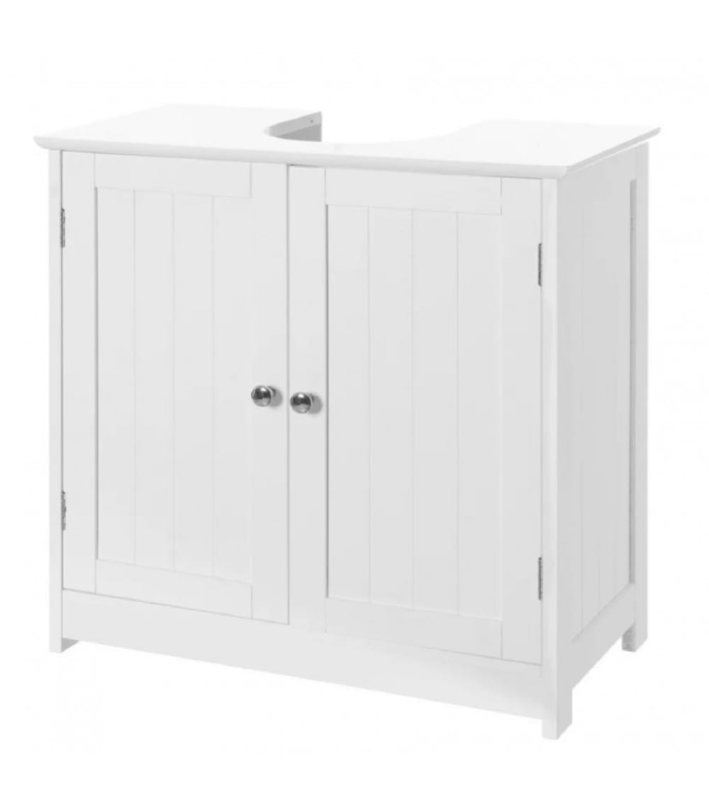 Meuble salle de bain sous lavabo/vasque en bois blanc 2 portes