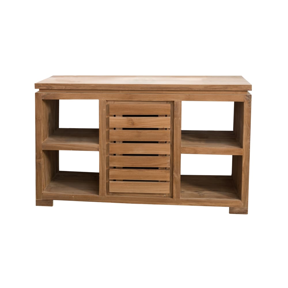 Meuble salle de bain en teck vasque marbre crème L67cm