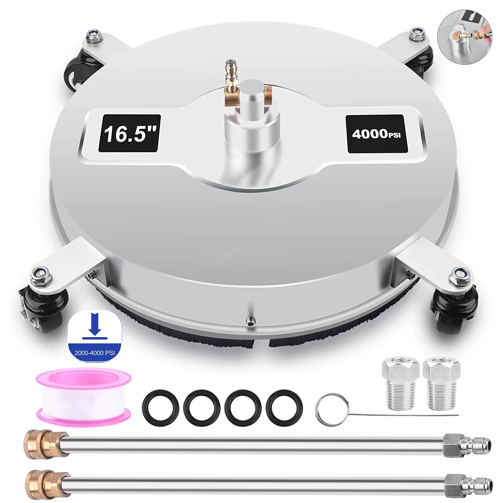 Nettoyeur haute pression en acier inoxydable, nettoyeur de surface au sol, 4 roues, Karcher Lavor 16.5 ", connecteur rapide, 4000PSI, 1/4"