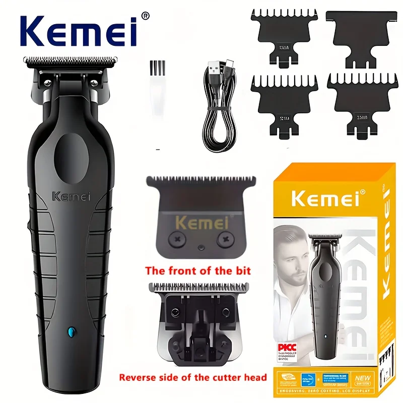 Kemei Km-2299 Base de tondeuse à cheveux professionnelle rechargeable par USB pour hommes et accessoires outil de toilettage professionnel tondeuse noire élégante