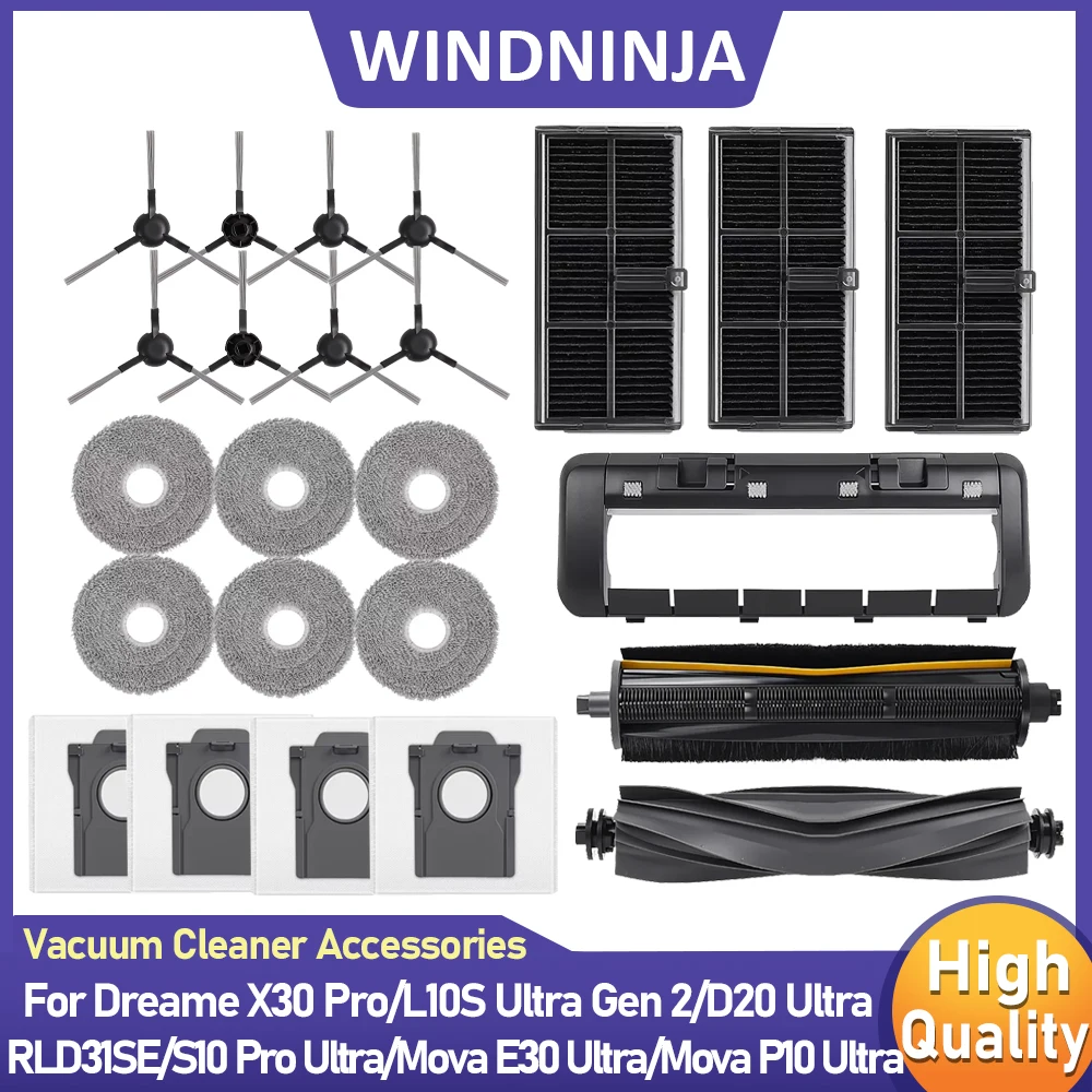 Sac à poussière brosse latérale principale filtre vadrouille adapté pour Dreame L10s Pro Ultra chaleur P10 Ultra Mova E30 Ultra L10s Ultra Gen 2 D20 UltraVacuum