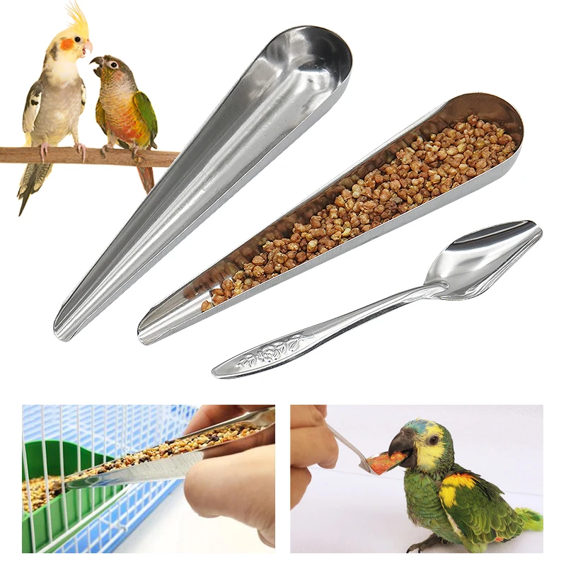 Mangeoire pour perroquets et oiseaux de compagnie, cuillère en acier inoxydable pour ajouter des aliments, Cage à oiseaux, accessoires pour ajouter des aliments, petit outil d'alimentation pour