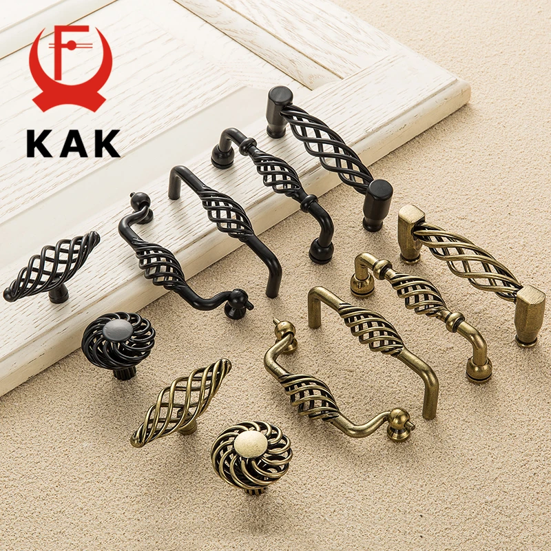 KAK Vintage Antique Bronze armoire poignées évider cage à oiseaux armoire tire tiroir boutons armoire porte extracteurs meubles poignée