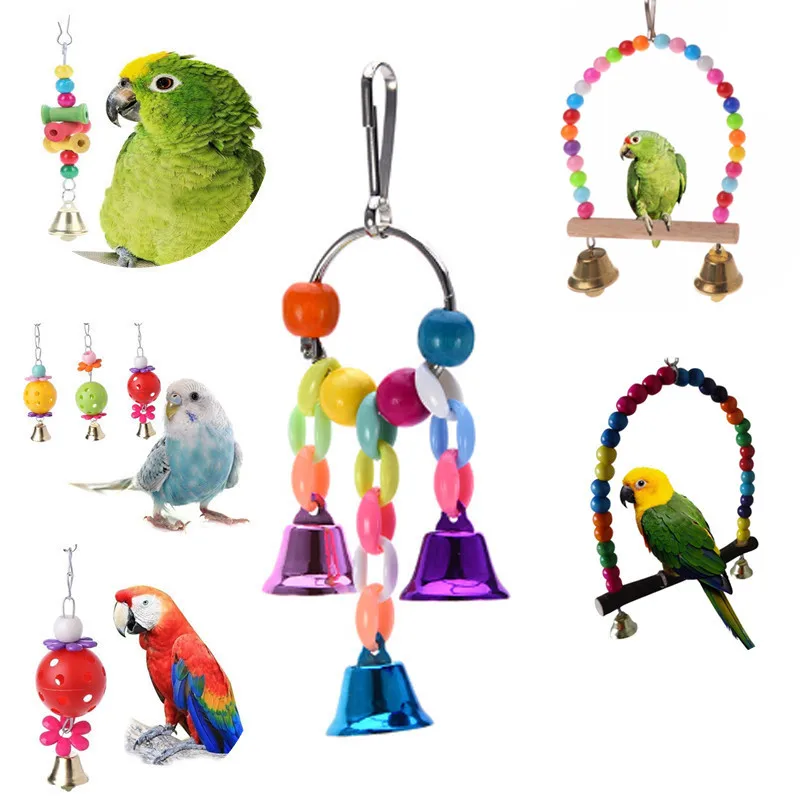 Jouets pour perroquets colorés, cloches pour oiseaux, accessoires pour animaux de compagnie, balançoire, support, perruche, perroquet, balançoire à mâcher