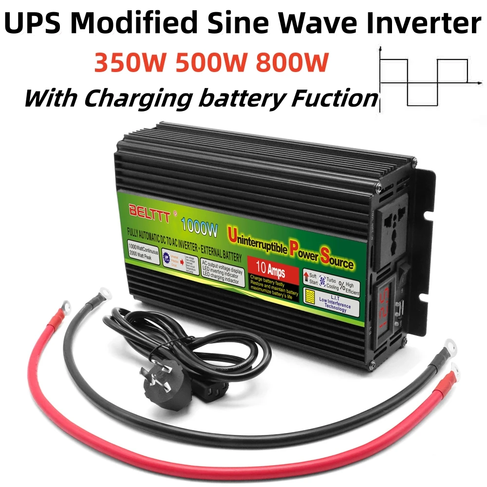Onduleur UPS à onde sinusoïdale modifiée, puissance 800W 1000W 2000W DC 12V AC 220V 230V 50HZ/60HZ, chargeur de voiture avec ventilateur intelligent