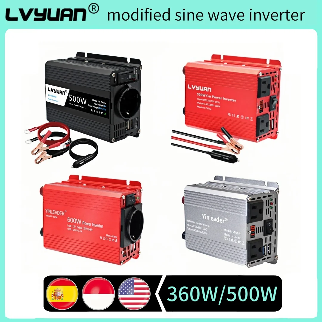 Onduleur de voiture portable avec allume-cigare Laguna, convertisseur de charge pour téléphone, ordinateur portable, appareil photo, 500W, DC 12V à AC 220V, 110V
