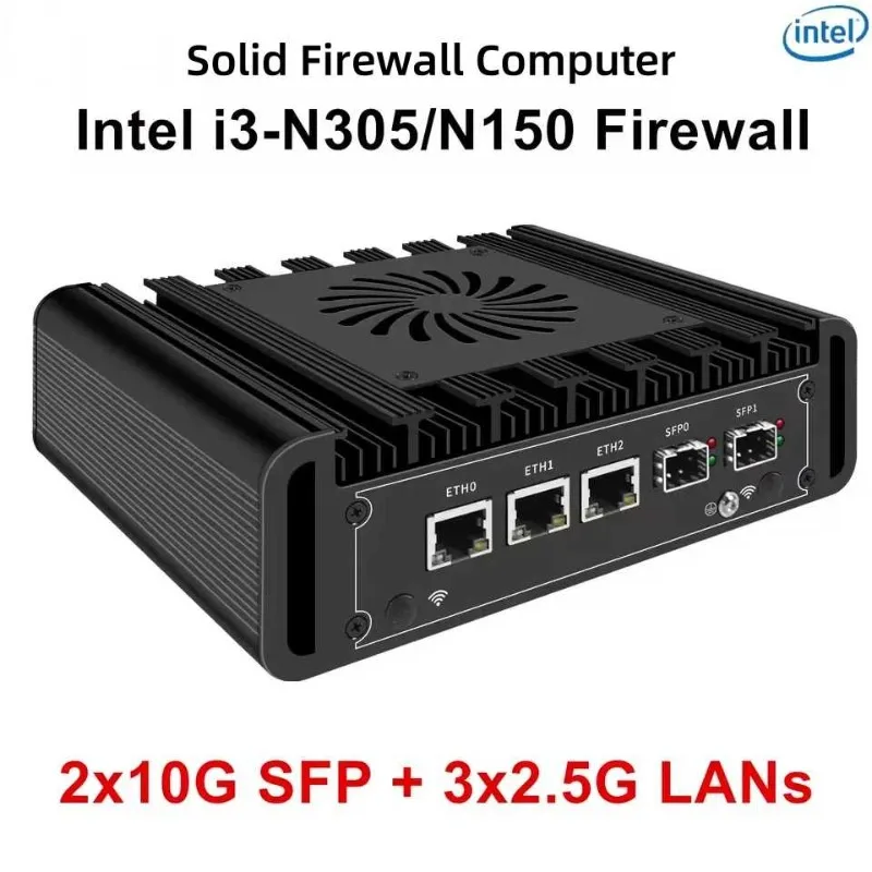 Ordinateur pare-feu solide 2x10G SFP + 3x2.5G LAN Intel i3 N305 N150 N100 Mini PC DDR5 NVMe serveur hĂ´te Proxmox pfSense OPNsense