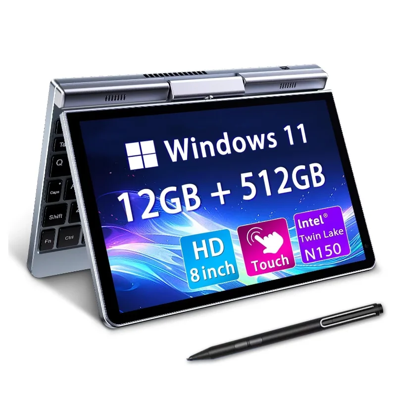 Mini ordinateur portable P8 Intel Alder Lake N150, écran tactile HD de 8 pouces, 12 Go de RAM, 512 Go de SSD, Windows 11, tablette 2 en 1, WiFi6