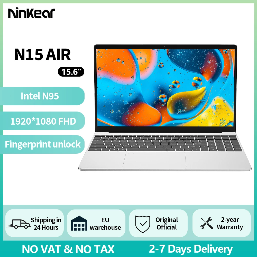 Ordinateur portable Ninkear N15 Air 15,6" FHD IPS 16 Go DDR4 512 Go SSD Intel N95 180 ° retourner avec le clavier rétroéclairé par déverrouillage par empreinte digitale Windows 11